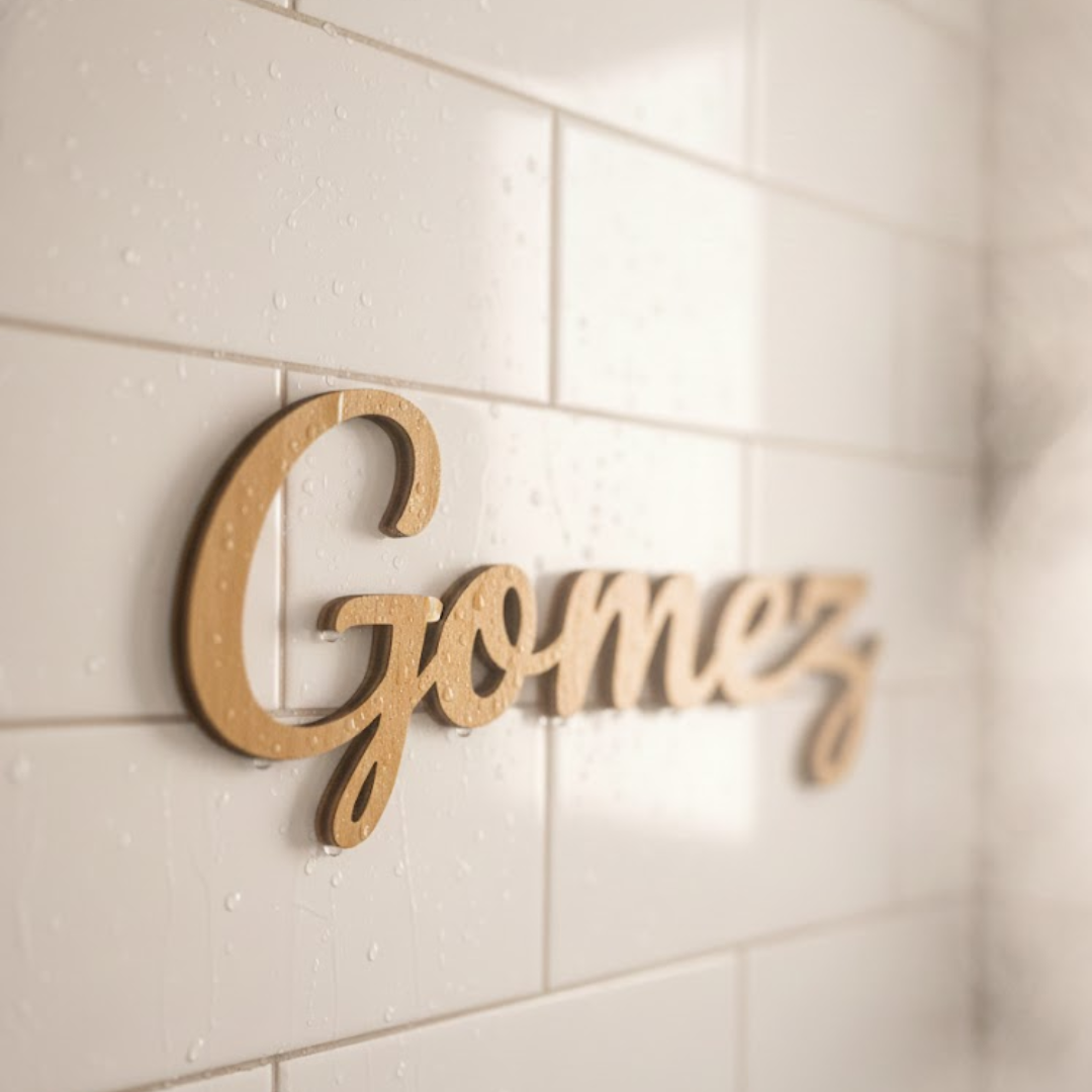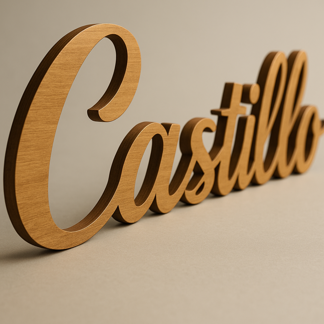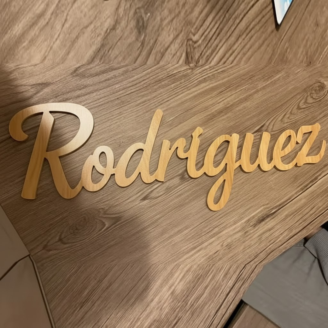 Cada pieza LaFamilia™ se talla con precisión en madera premium, revelando tu apellido con una belleza que transforma cualquier pared al instante.